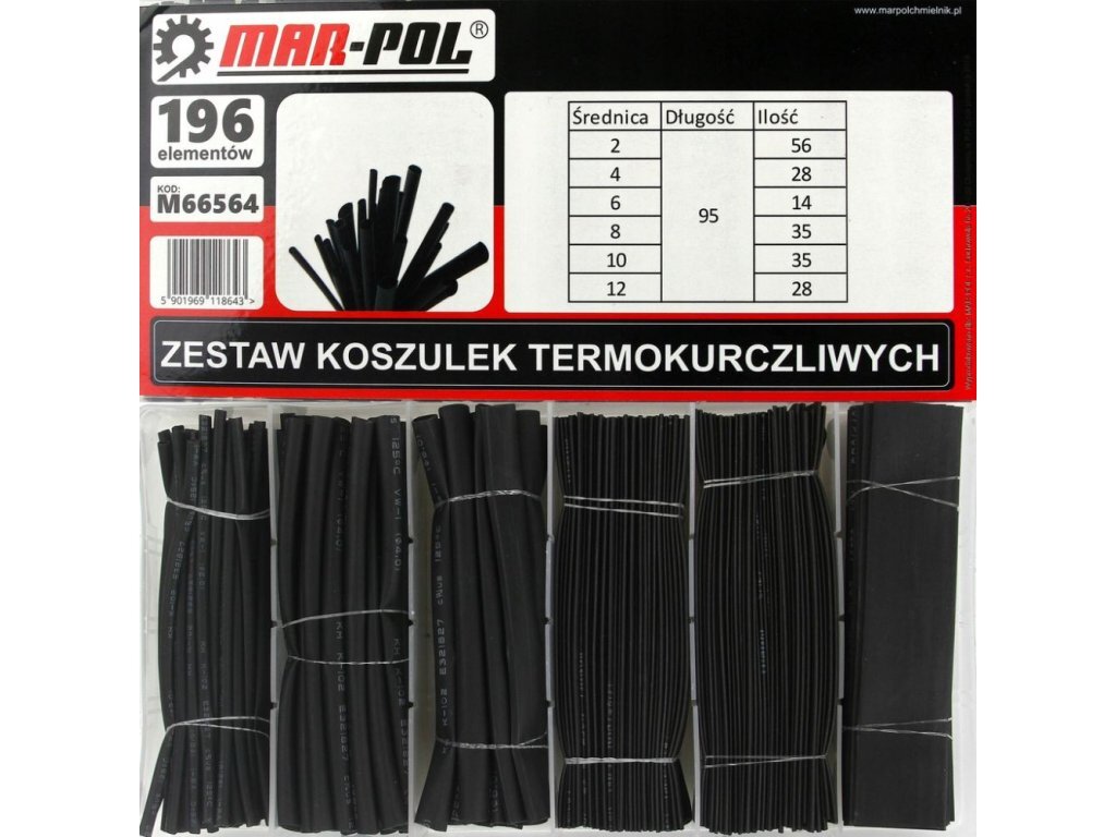 Velký výběr smršťovacích hadiček o délce 95mm, 6 průměrů 2-12 mm, 196 kusů, 125°C Plné zmenšení vnitřního průměru na polovinu původního.