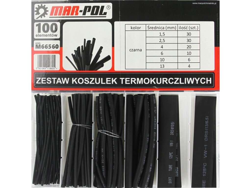Velký výběr smršťovacích hadiček, 6 průměrů 1,5 - 13 mm, 100 kusů, odolné do 125°C Plné zmenšení vnitřního průměru na polovinu původního.