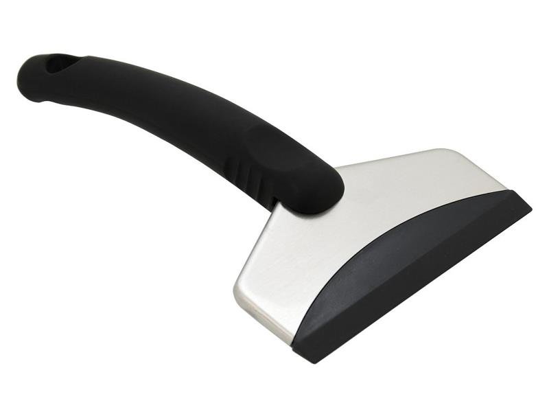 Stylová škrabka s ergonomickou rukojetí a kovovými doplňky, délky 18 cm Břit je zhotoven z vysoce odolného, měkkého plastu pro bezpečné použití bez poškození skel. Šířka břitu 11 cm zabezpečí rychlé a šetrné očištění skel.