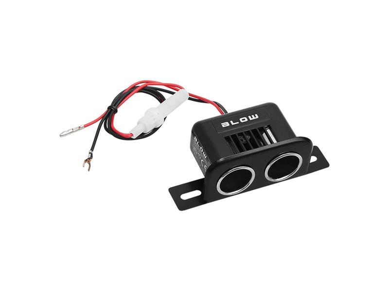 Rozbočovač do zapalovače s pojistkou na vodičích zakončený vidlicovým konektorem a kulatým konektorem samec.