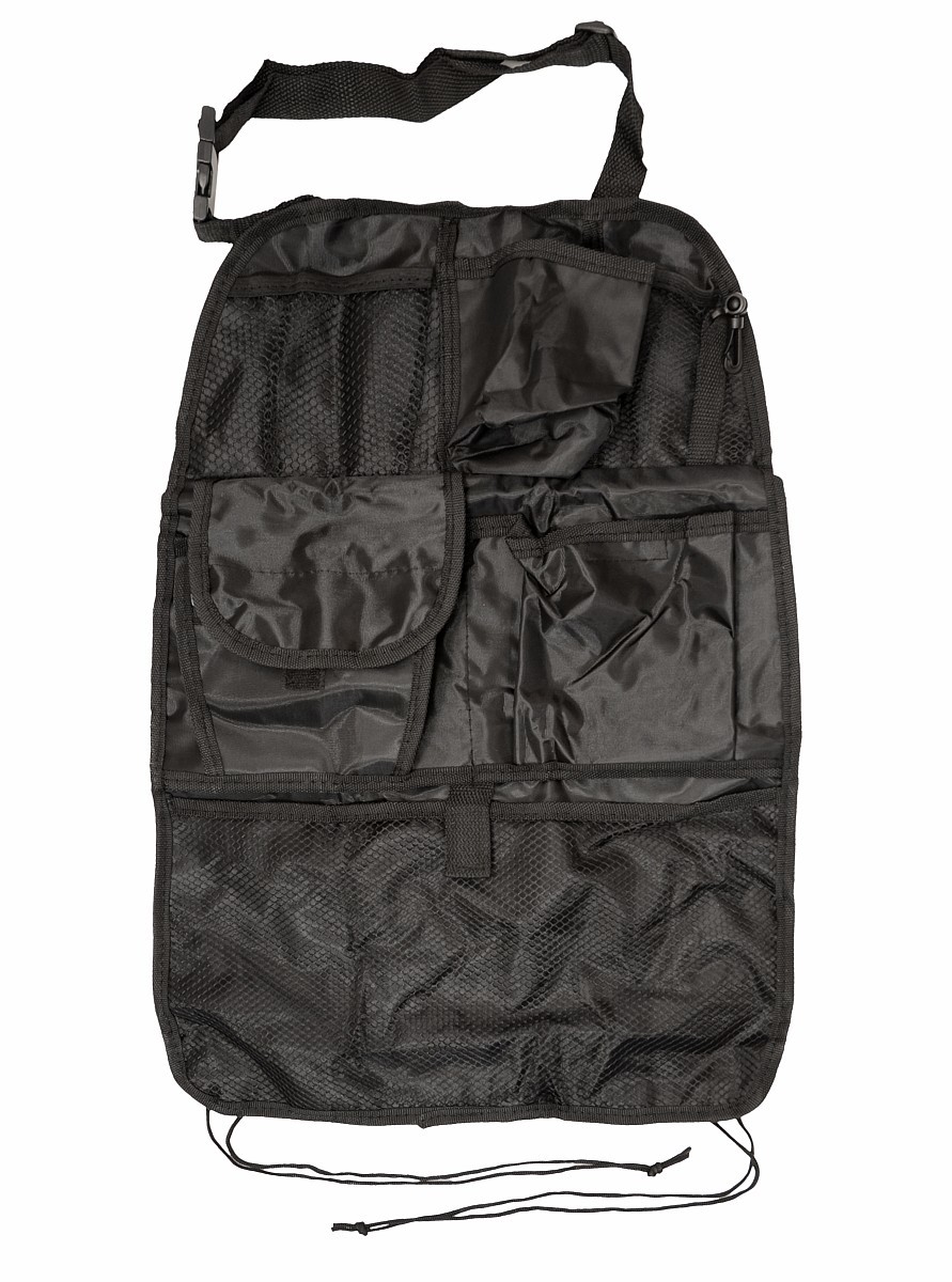 Organizér určený k připevnění na zadní stranu předního sedadla. Upevnění horní části pomocí popruhů za opěrku hlavy, spodní části popruhy za sedadlo. Jedinečné uspořádání - několik různých kapes vhodných pro mapy, nápoje a různé drobnosti.