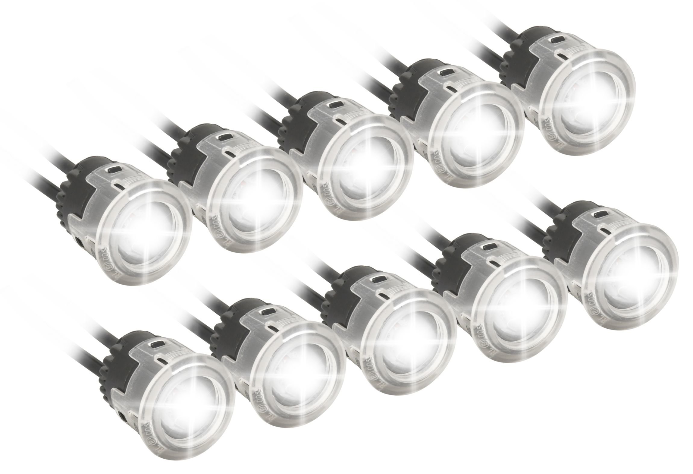 Homologovaná světla pro denní svícení s napájením 12/24V. Každé ze světel se skládá z 5 vysoce svítivých HI POWER LED spolu propojených kabeláží. Tato světla jsou ideální pro individuální způsoby sestavení a připevnění na vozidlo. Balení obsahuje vrták pro vytvoření otvorů pro světla, 2x sadu světel, řídící jednotku společně se šrouby pro upevnění a kompletní kabeláž pro zapojení světel. ON/OFF systém s možností obrysových světel - Světla pro denní svícení se rozsvítí automaticky při otočení klíčku zapalování. Při rozsvícení parkovacích nebo potkávacích světel se světla pro denní svícení automaticky vypnou nebo přepnou do režimu obrysových světel (dle zapojení) a po zhasnutí světel se opět rozsvítí naplno.LED světla s velmi nízkou spotřebou, tyto světla mají rozptýlené světlo, které netvoří kužel (a tím neoslňuje) ale dostatečně zajišťují základní podmínku světel pro denní svícení (DRL). Při rozsvícených světlech pro denní svícení, nemusí být při nesnížené viditelnosti rozsvícená obrysová nebo potkávací světla. Montáž těchto světel pro denní svícení není přestavbou vozidla ani změnou technických údajů. Jejich umístění na vozidlo nepodléhá žádnému dodatečnému schvalování.