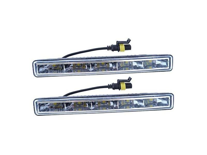Homologovaná světla pro denní svícení, napájení 12/24 V. Každé světlo je osazeno 5x vysoce svítivou HI POWER LED diodou. Balení obsahuje světla (2 ks), montážní držáky světel, řídící jednotku a kompletní kabeláž pro zapojení světel. ON/OFF systém s možností obrysových světel - světla pro denní svícení se rozsvítí automaticky při otočení klíčku zapalování. Při rozsvícení parkovacích nebo potkávacích světel se světla pro denní svícení automaticky vypnou nebo přepnou do režimu obrysových světel (dle zapojení) a po zhasnutí světel se opět rozsvítí naplno.LED světla s velmi nízkou spotřebou, tyto světla mají rozptýlené světlo, které netvoří kužel (a tím neoslňuje) ale dostatečně zajišťují základní podmínku světel pro denní svícení (DRL). Při rozsvícených světlech pro denní svícení, nemusí být při nesnížené viditelnosti rozsvícená obrysová nebo potkávací světla. Montáž těchto světel pro denní svícení není přestavbou vozidla ani změnou technických údajů. Jejich umístění na vozidlo nepodléhá žádnému dodatečnému schvalování.