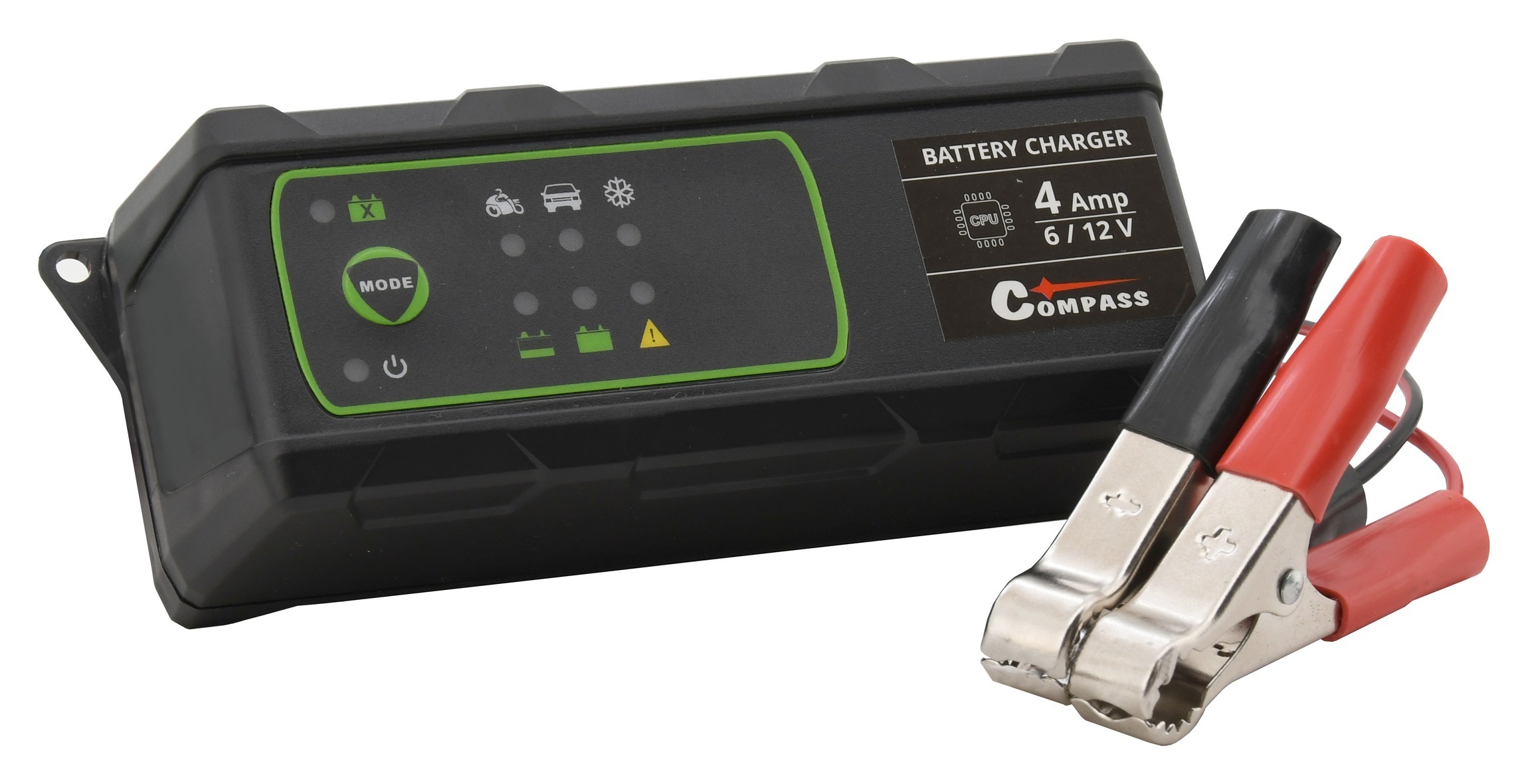 Univerzální přenosná nabíječka akumulátorů 6 nebo 12V, napájení 230V, určeno pro akumulátory o kapacitě 4 - 120 Ah. Nabíječka automaticky rozpozná, je-li připojen 6V nebo 12V akumulátor. Při zapojení 12V akumulátoru lze zvolit režim nabíjení standardní nebo zimní. Jakmile je akumulátor nabit, nabíjení se přeruší a nabíječka se přepne do udržovacího režimu, kdy mikroprocesor řídí pulzní nabíjení tak, aby udržoval akumulátor v nabitém stavu. Stabilní nabíjecí proud 4 A, vysoká účinnost (85%). Kompaktní velikost umožňuje ideální využití doma, na cestě i v garáži. Nabíjí všechny typy 6/12V olověných (Pb) akumulátorů - bezúdržbové GEL (gelové), AGM, MF, VRLA, údržbové PbWet a PbCa. Pulzní dobíjení prodlužuje životnost baterie a udržuje ji v lepší kondici.