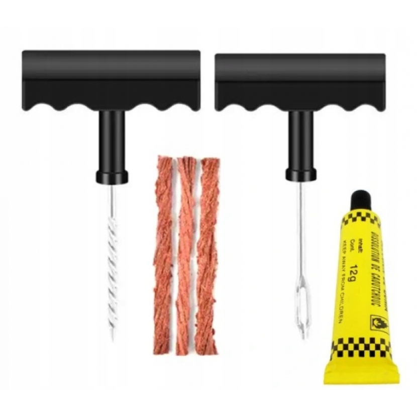 Opravná sada pro rychlou opravu pneumatik jízdních kol a automobilů.Vlastnosti:• vhodná pro použití jak profesionály, tak běžnými řidiči, kteří jsou nuceni provést rychlou opravu na silnici• oceňovaná řidiči osobních automobilů, ale i cyklisty• už nezůstanete bezmocní při absenci rezervního kola nebo přídavné duše na koloObsah balení:1x šídlo1x aplikátor1x lepidlo5x šňůra pro výplňNávod k použití:1. Místo poškození pneumatiky označte křídou. Poté ...