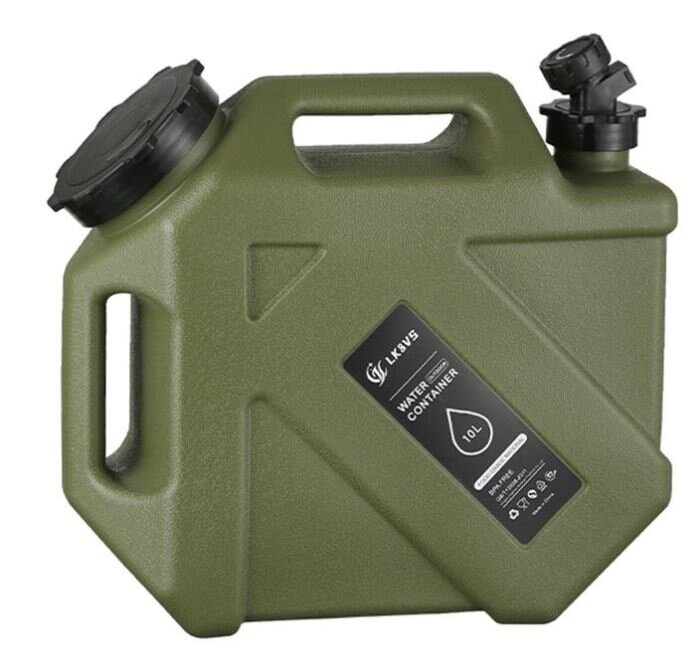 Kanystr s dvojitým uzávěrem, flexibilní nástavec hubice pro snadnější nalévání, vyroben z velmi odolného polymeru.
