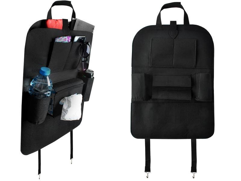 Organizér do auta filcový černý je výborným pomocníkem na cesty i do každodenního provozu. Snadno jej připevníte k autosedačce pomocí suchých zipů a gumových pásků s kovovými háčky. Díky němu budete mít během jízdy veškeré nezbytnosti ihned dostupné a zároveň ochráníte sedačku před nečistotami.