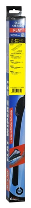Sada dvou plochých stěračů FLAT (řidič + spolujezdec) se speciálním uchycením. Délky stěračů a systém uchycení na ramínko jsou přizpůsobeny vybraným vozům (viz tabulka použití).