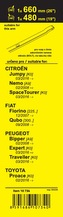 Sada dvou plochých stěračů FLAT (řidič + spolujezdec) se speciálním uchycením. Délky stěračů a systém uchycení na ramínko jsou přizpůsobeny vybraným vozům (viz tabulka použití).