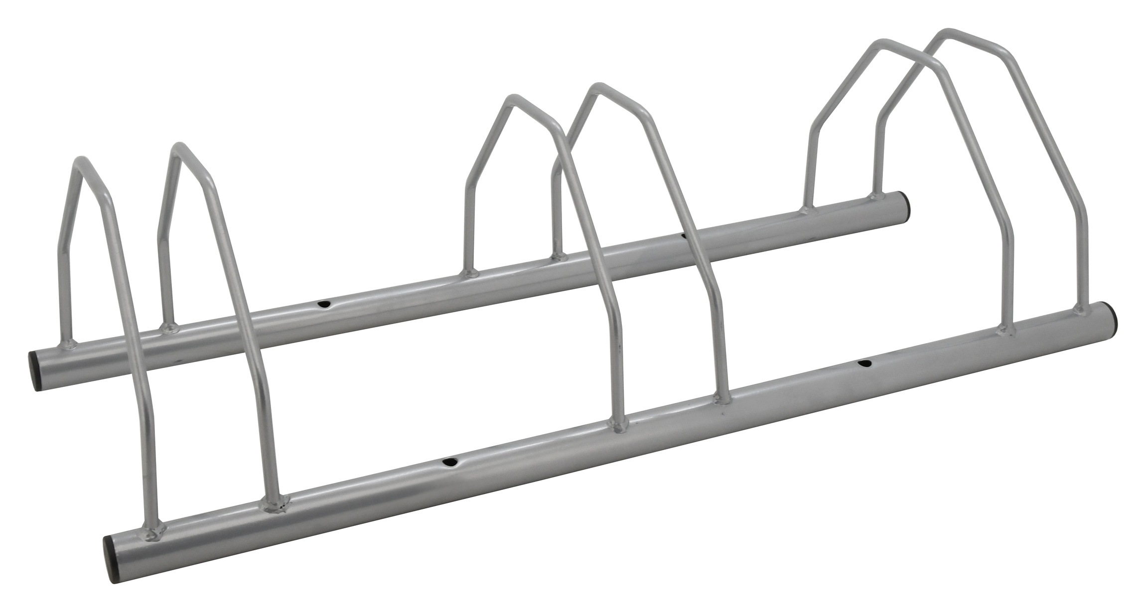Praktický stojan na 3x bicyklyy vhodný k připevnění do země pomocí vrutů s hmoždinkami (jsou součástí).