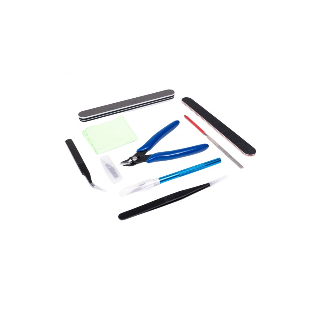 Obsah balení:1 x boční kleště2 x pinzeta1 x pilník2 x oboustranná leštěná tyč1 x nůž a 5 ks čepele1 x průhledná krabiceVhodné pro děti od 14 let.
