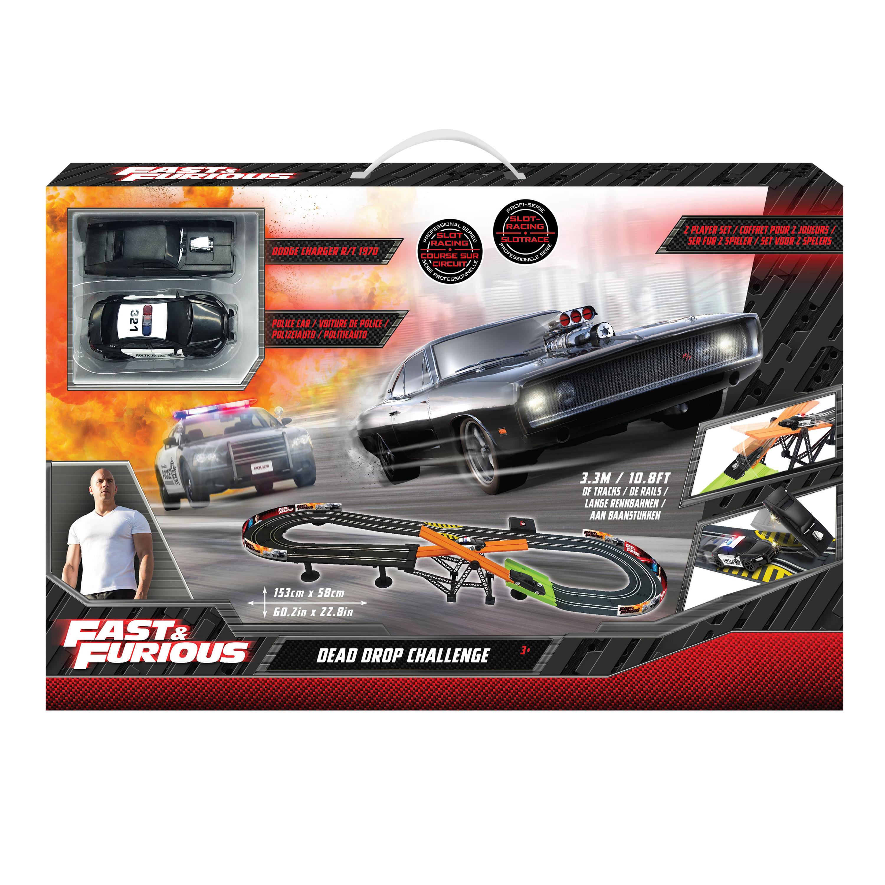 Autodráha s překážkou Rychle a zběsile. Délka trati 3,3 m. Rozměry 153x58 cm. 2 auta součástí. 6xAA baterie do bateriového boxu nejsou součástí. Návod na sestavení součástí.