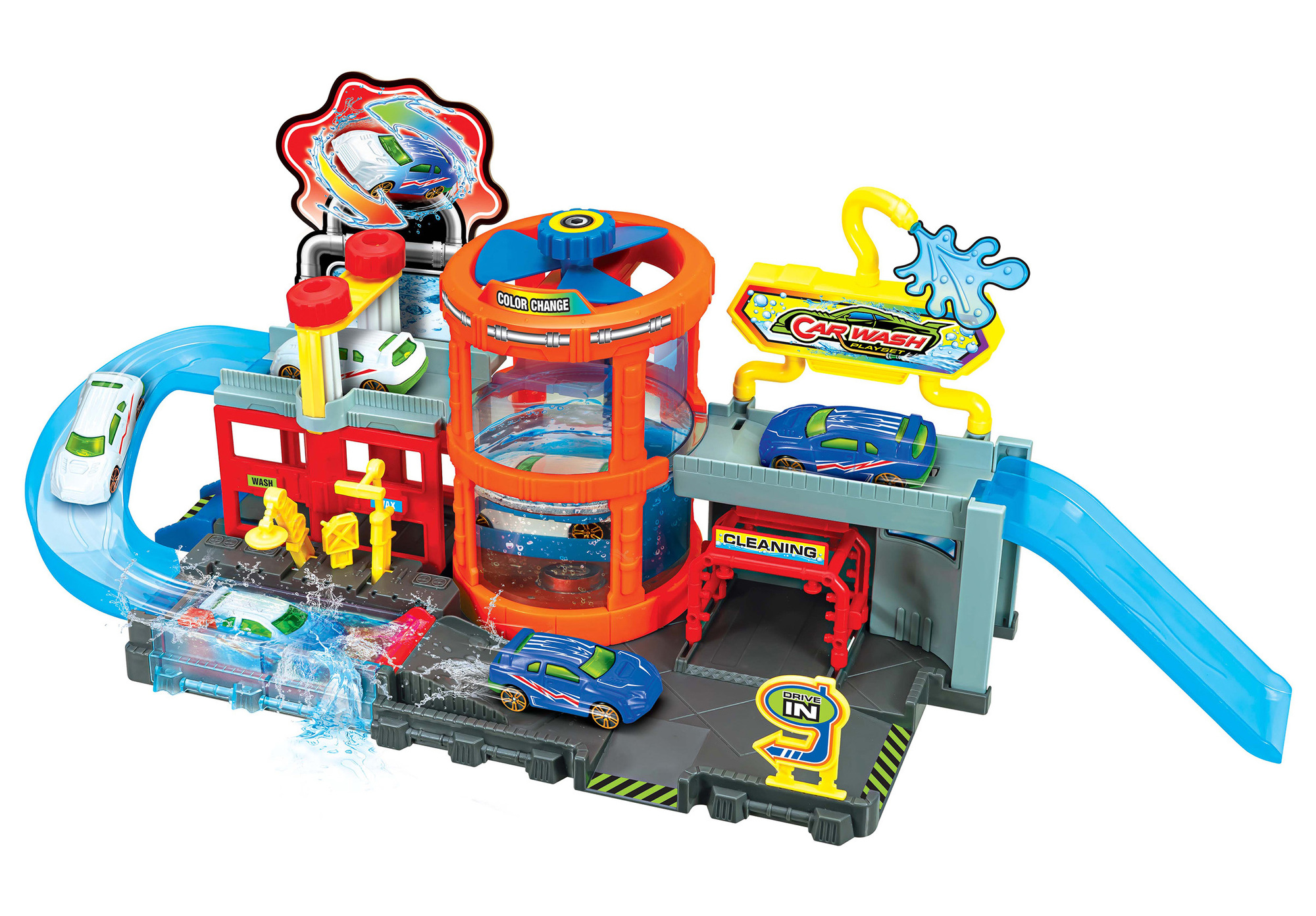 Myčka aut s autem měnícím barvy