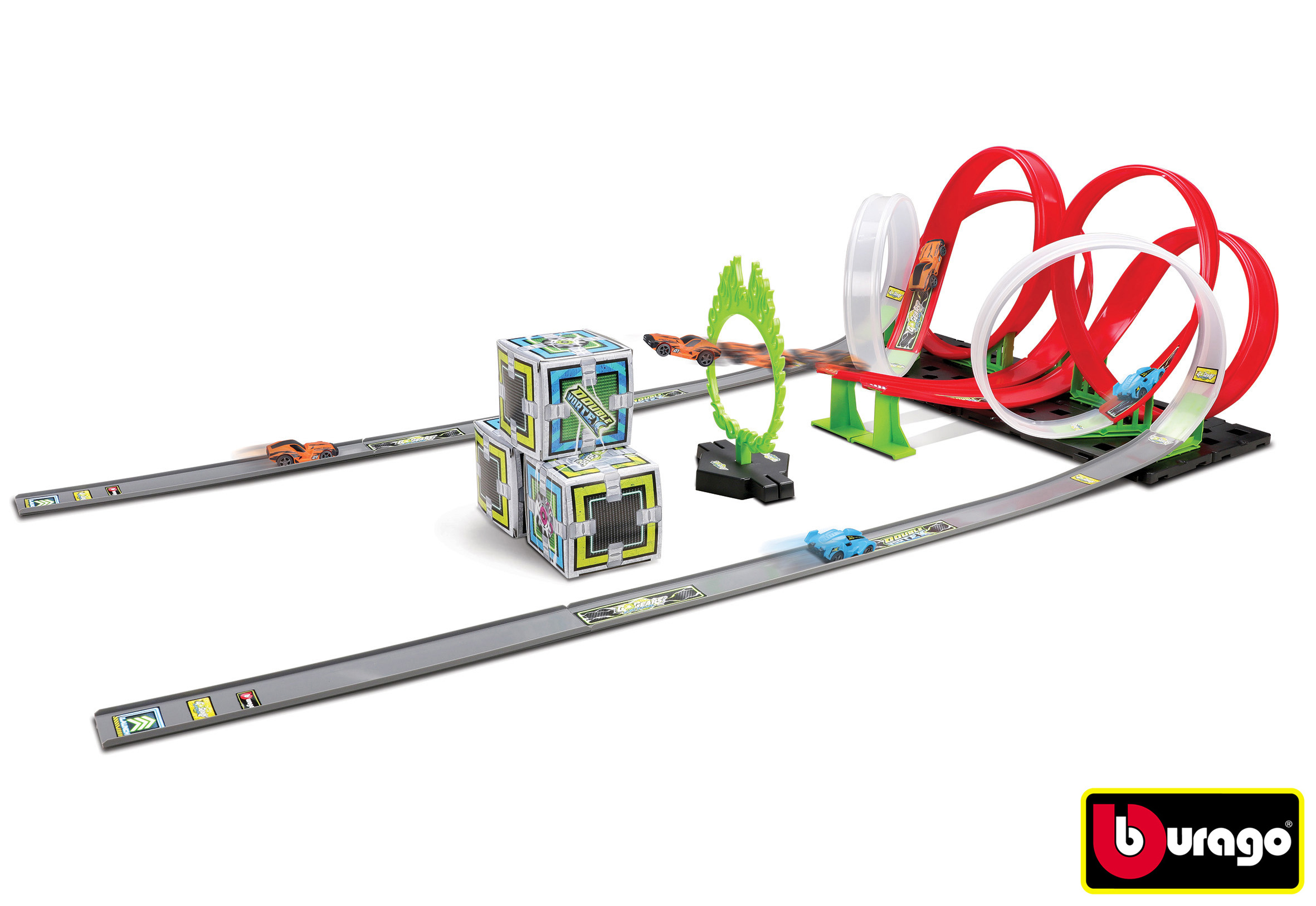 Parádní autodráha se smyčkami a dvěma paralelními startovacími dráhami.