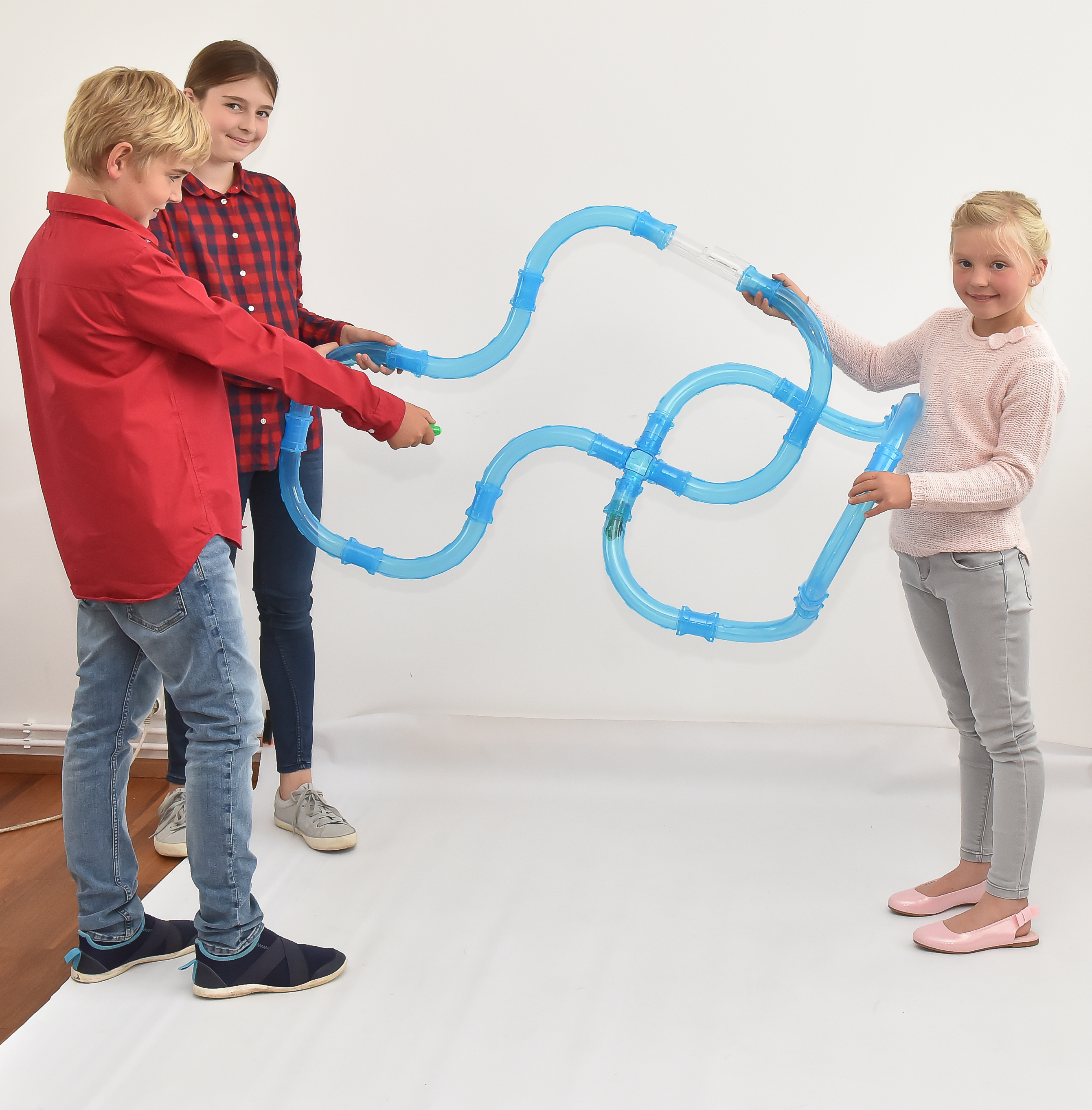 Trubkovou dráhu si sestavíte do tvaru, který chcete do výšky či šířky. Inspiraci na sestavení dráhy najdeš na obale. Sestavenou dráhu můžete i zavěsit na příklad na palandu. Autíčko jezdí neuvěřitelnou rychlostí uzavřenou trubkou a nevypadne. Pokud chceš, aby jízda byla ještě zajímavější vlož před auto světelnou kouli, za kterou auto bude jezdit a když se ho dotkne, koule se rozsvítí. Kromě trubek( rovinek, zatáček) najdete v balení 2 ovladače, 2 různobarevná auta, svítící koule. Autíčko se nabíjí přes USB kabel, ovladač funguje na tužkové baterie typu 2xAAA (nejsou v balení). Obsahuje 2 závodní auta 2 dálkové ovladače 10 zatáček 2 trubky se vstupem pro auta 16 spojek 2 kontrolní trubky
