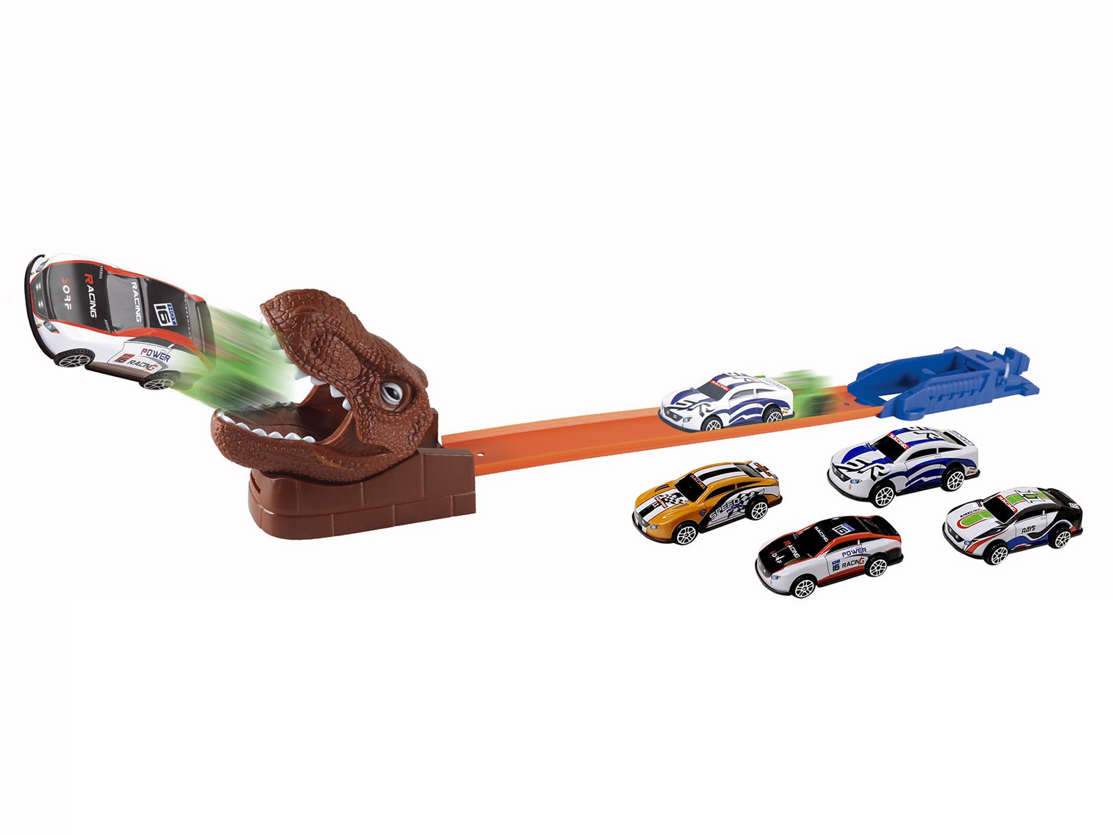 Vystřelovací dráha dino se 4 auty 45x12x16 cm