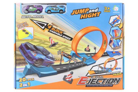 Plastová vystřelovací dráha s autíčky. Lze nastavit 4 stupně výstřelu. Krabici lze použít jako doskokovou plochu. Balení obsahuje také 2 kovová autíčka. Rozměry balení cca 36 x 28,5 x 4,5 cm. Věk 3+ číst celé