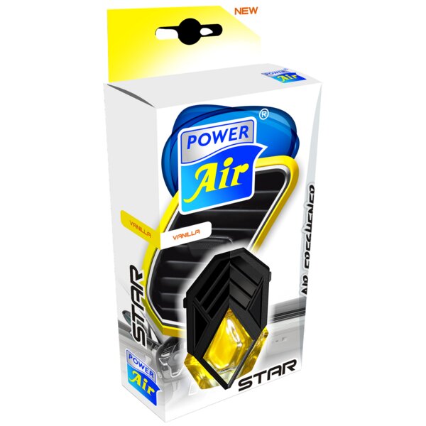 STAR kapalinový osvěžovač 9ml - Vanilla je kompaktní vůně ve skleničce navržená pro jednoduché připevnění na mřížku ventilátoru. Nabízí příjemnou, teplou vanilkovou vůni, která decentně provoní interiér auta nebo menší domácí prostory bez potřeby složité instalace.