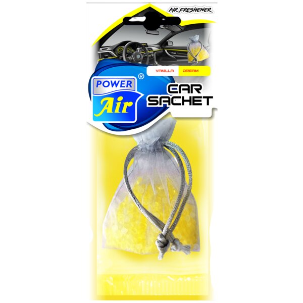 CAR SACHET vonný sáček 17g - Vanilla dream je praktický parfémovaný sáček plný vonných perliček, navržený pro snadné zavěšení a okamžité provonění prostoru. Hlavním benefitem je jednoduché použití a dlouhotrvající příjemná vůně vanilky, která vytváří útulnou atmosféru v autě i doma.
