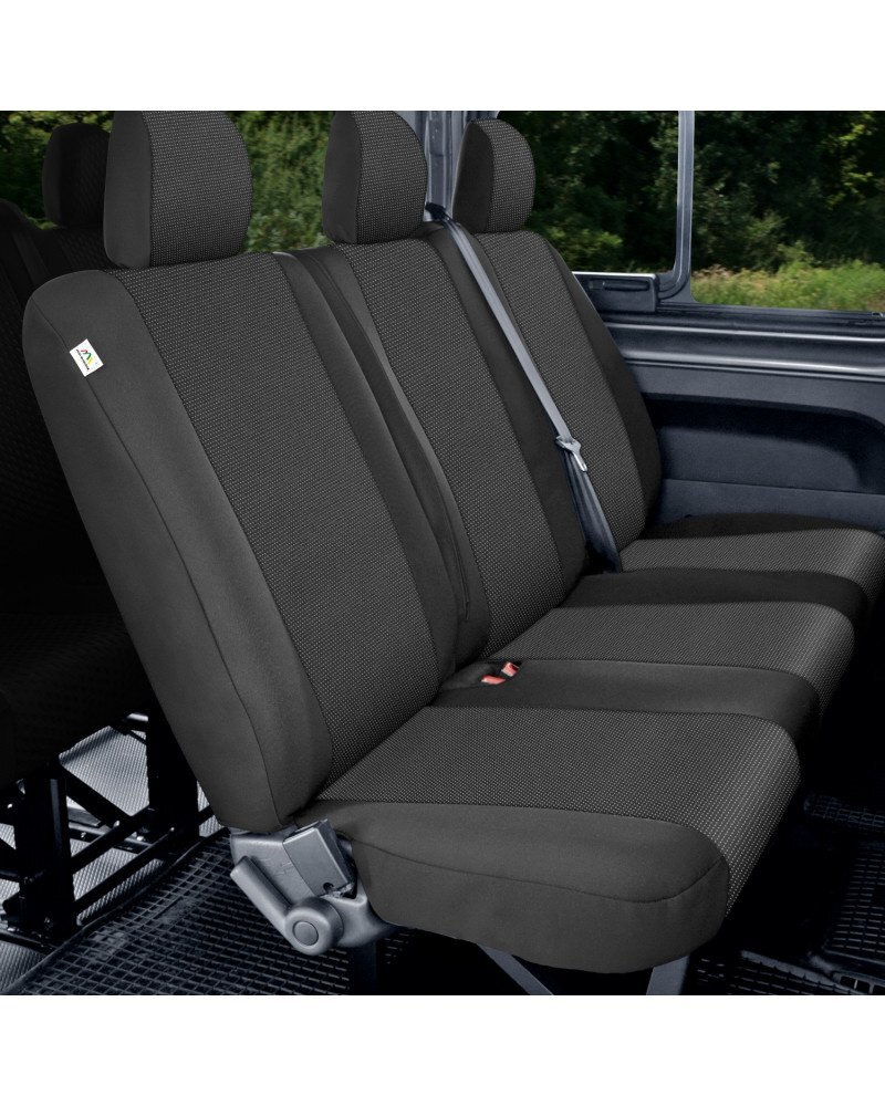 Sada obsahuje: 1x trojitou sedačku bez rozděleného sedáku (potah je upravený pro loketní opěrky namontované na boční straně), 3x opěrky hlavy a montážní háčky. Autopotahy jsou šité ze zátěžové polyesterové tkaniny (100% polyester). Vnitřní strana autopotahů je obšita materiálem z PUR pěny, který zabraňuje klouzání po sedadle, takže se potahy nehrnou a nemačkají.