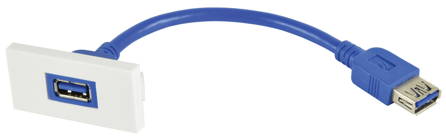 Modul se zásuvkou USB 3.0 typu A a 170 mm kabelem s další zásuvkou pro USB 3.0 (max. datový tok 5 GBps). Kompatibilní s nástěnnými rámečky SA122500 a SA122505. Snadné připojení USB zařízení a úhledné uložení kabelů. Vhodné pro domácí či komerční instalace.Rozměry: 50 x 25 x 175 mmHmotnost: 23 g