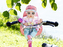 Baby Annabell jezdí moc ráda na kole se svojí malou maminkou a tatínkem. Okolí poznává z bezpečí vlastní sedačky na kolo. Na výlety má připraven skvělý cyklistický obleček. Základem je bílé tričko s obrázkem ovečky, jak jinak než jedoucí na kole. Tričko doplňují tyrkysové kalhoty v pase ozdobené růžovou mašličkou a na kolenou legračními záplatami. Tričko a kalhoty Baby Annabell skvěle sladila s růžovo-bílými teniskami. Uvidíme, jestli během výletu na kole najde Baby Annabell rybníček s tolika lekníny, koli