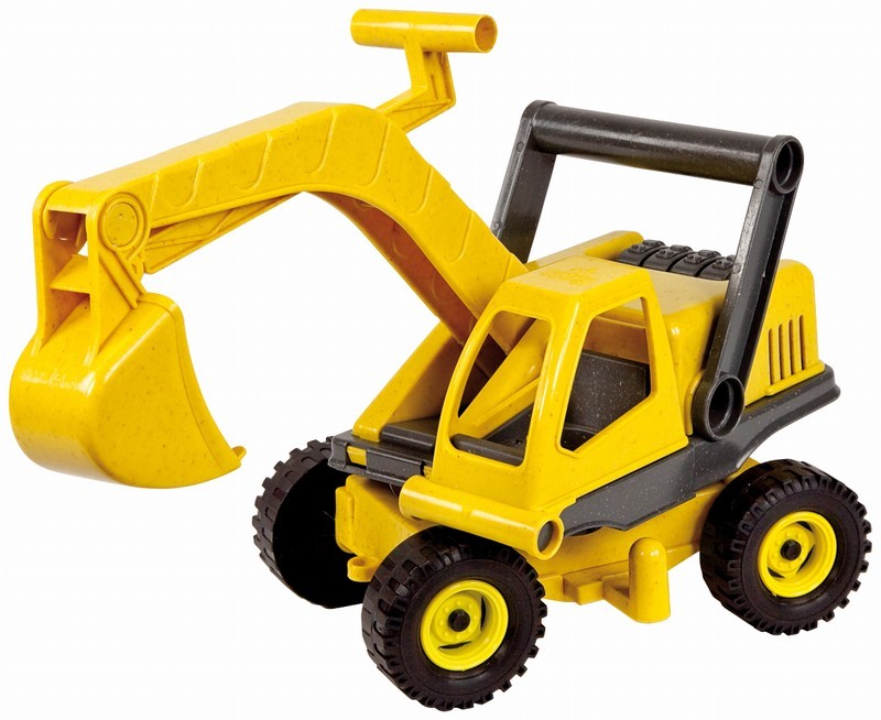 Pevný a robustní bagr vyrobený za pomocí recyklovaných materiálů a příměsi dřeva. Disponuje funkční mechanikou umožňující ovládání lžíce a odklopitelnou kabinou pro snadnou manipulaci s figurkou řidiče (není součástí balení). Hlavní vlastnosti: