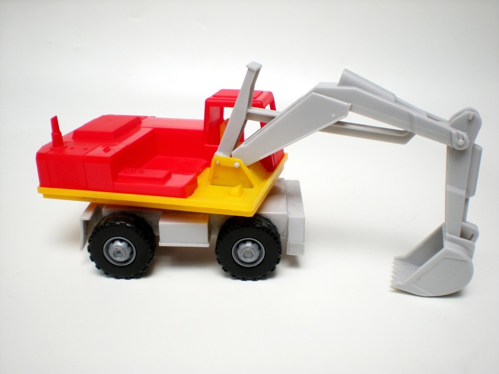 Plastový bagr s realistickým vzhledem o velikosti 25×11×12 cm. Plně mechanicky funkční. Vyroben z kvalitních materiálů. Věk 3+.