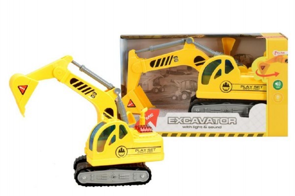Auto stavební bagr plast 23cm na baterie se zvukem a světlem v krabici