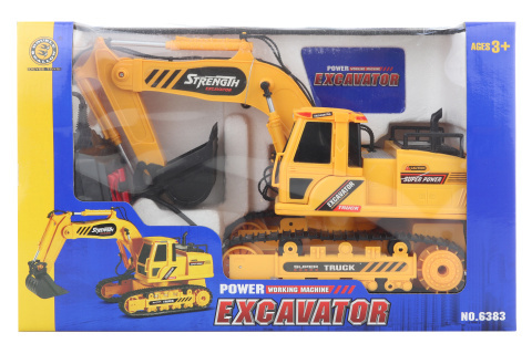 Plastový bagr na ovládání na kabel. Napájení na 4 AA baterie (nejsou součástí). Rozměry bagru cca 31 x 22 x 14 cm. Rozměry balení cca 39 x 16 x 24,5 cm. Věk 3+