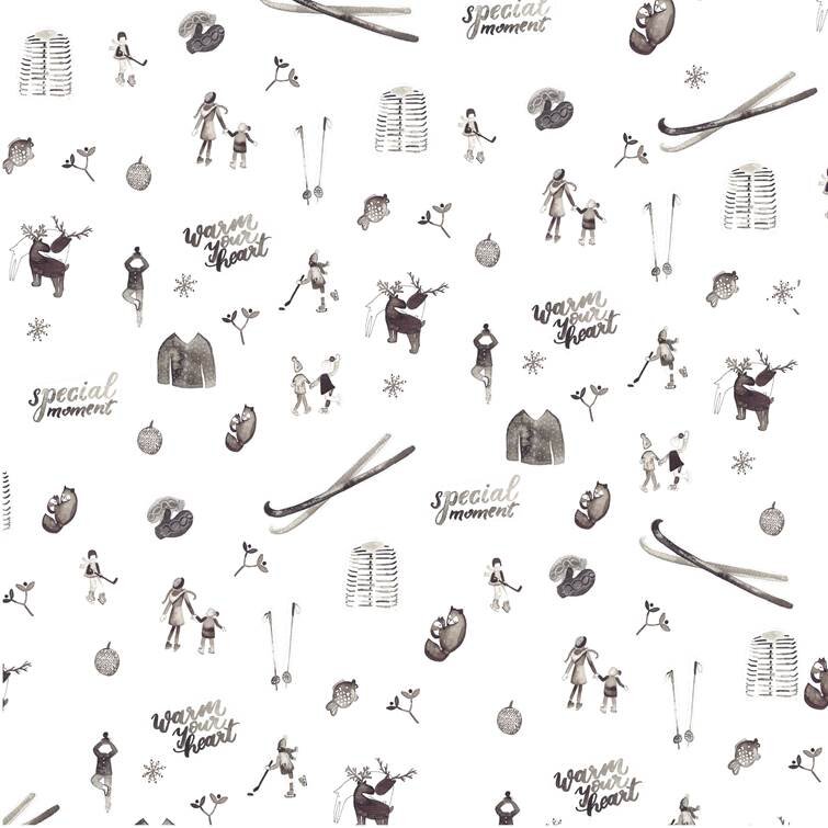 Vánoční balicí papír Přírodní světlý ilustrovala česká výtvarnice Bára z Nikolajky. Ilustrace byly vytvořeny technikou akvarelu a kreslení.