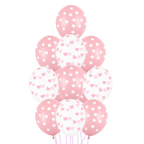 Balonkový buket puntíky a srdíčka růžový - 12 ks