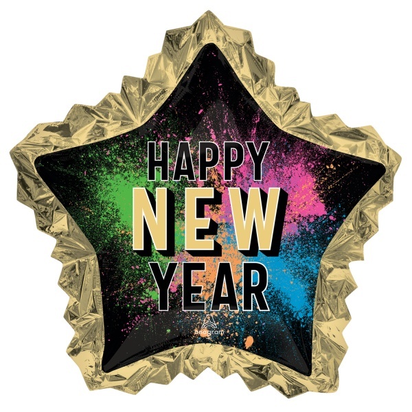 Foliový balonek hvězda Happy New Year - Glow color 86 cm x 81 cm