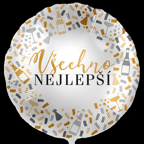 Foliový balonek Všechno nejlepší konfety a dobré pití CZ - 43cm