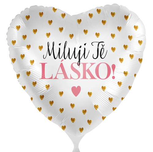 Foliový balonek Miluji tě lásko - zlatá srdíčka CZ - 43cm