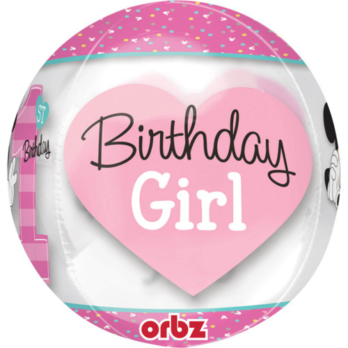 Foliový balonek koule Orbz Minnie 1st Birthday 40 cm