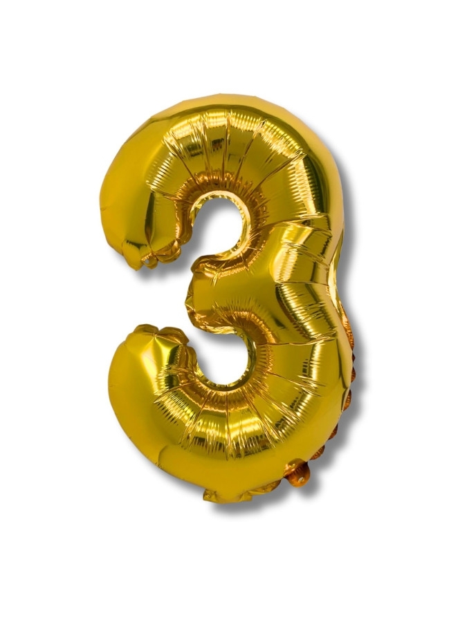 Fóliový balónek ve tvaru čísla 3 o velikosti 40 cm v elegantní zlaté barvě. Ideální dekorace na oslavy, narozeniny, výročí či jiné slavnostní příležitosti. Balónek lze snadno nafouknout pumpičkou nebo brčkem. Po nafouknutí není potřeba otvor zavazovat. Při vyfouknutí lze opět použít brčko. Praktický a stylový doplněk pro každou oslavu.