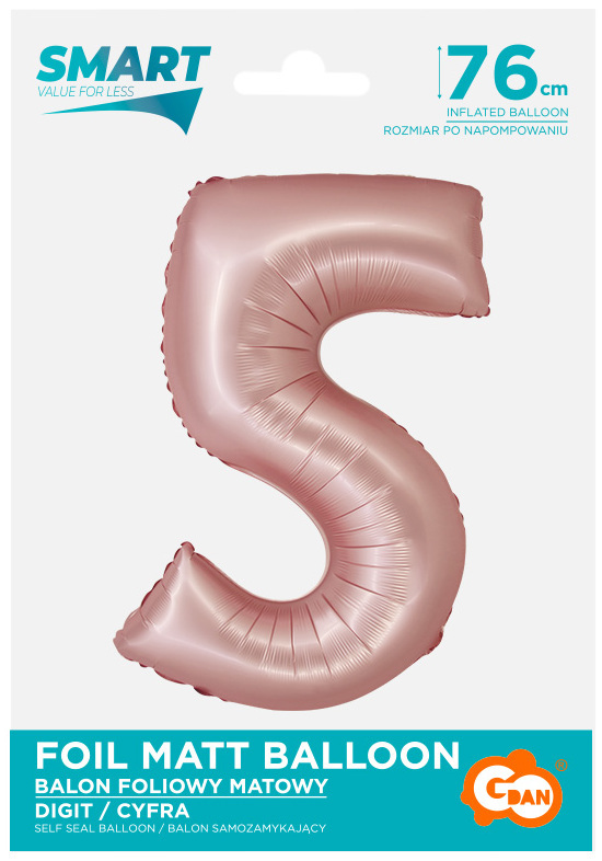 Balon foliowy Smart, Cyfra 5, j. różowa matowa, 76 cm, GoDan