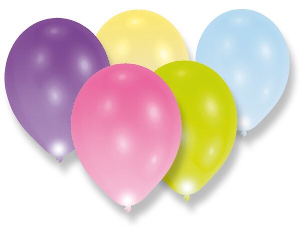 Nafukovací LED balónky v pastelových barvách bez potisku. V balónku je svítící kulička, která se aktivuje vytažením bezpečnostního proužku. Balónek je možné naplnit vzduchem nebo héliem. Kulička vydrží svítit cca 24 hodin s klesající intenzitou.5 kusů v balení.