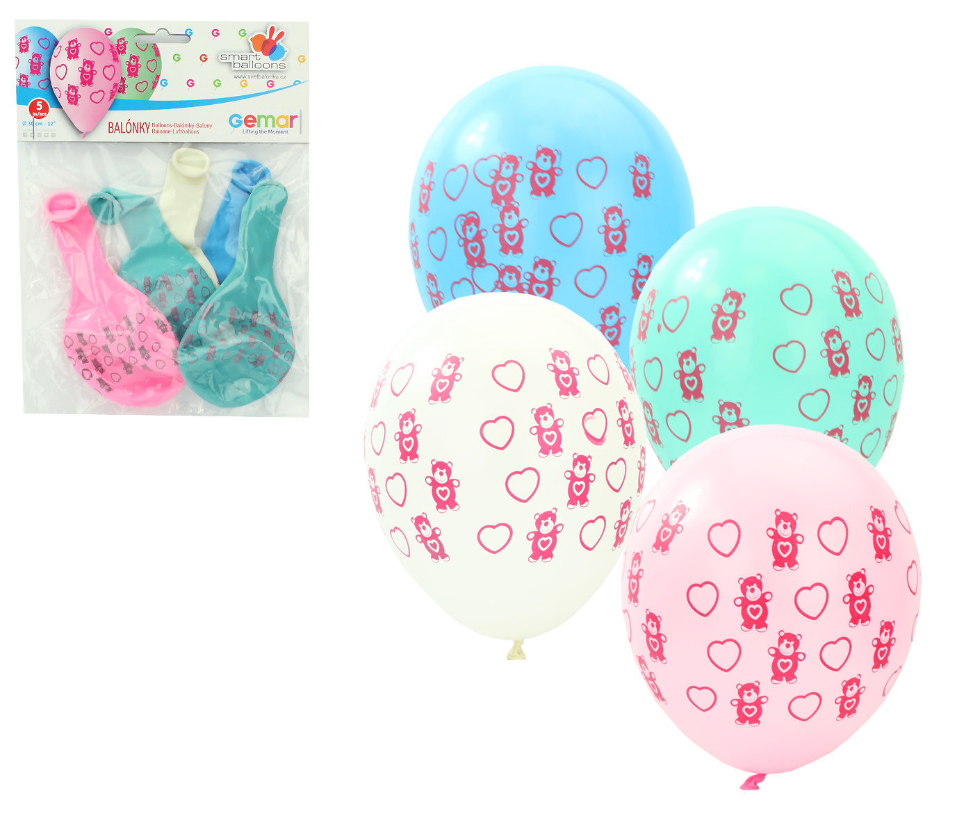 Balónky s potiskem 5ks OBYČ. Medvěd
