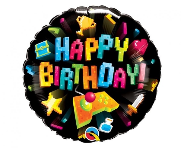 Foliový balonek v motivu starých her s nápisem Happy birthday, může být dárkem pro oslavence nebo jako dekorace na narozeninovou party.Vhodný k naplnění vzduchem i heliem.Velikost: