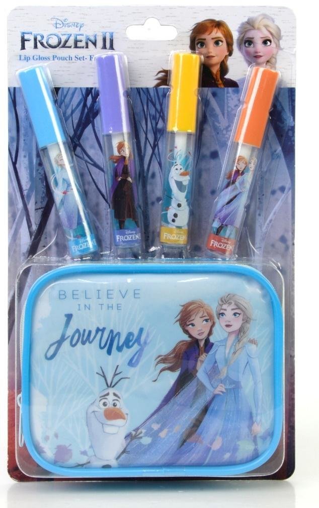 Zestaw błyszczyków dla dzieci Frozen z kosmetyczką Zawiera 4 błyszczyki, wewnątrz pięknej torebki z grafiką Frozen