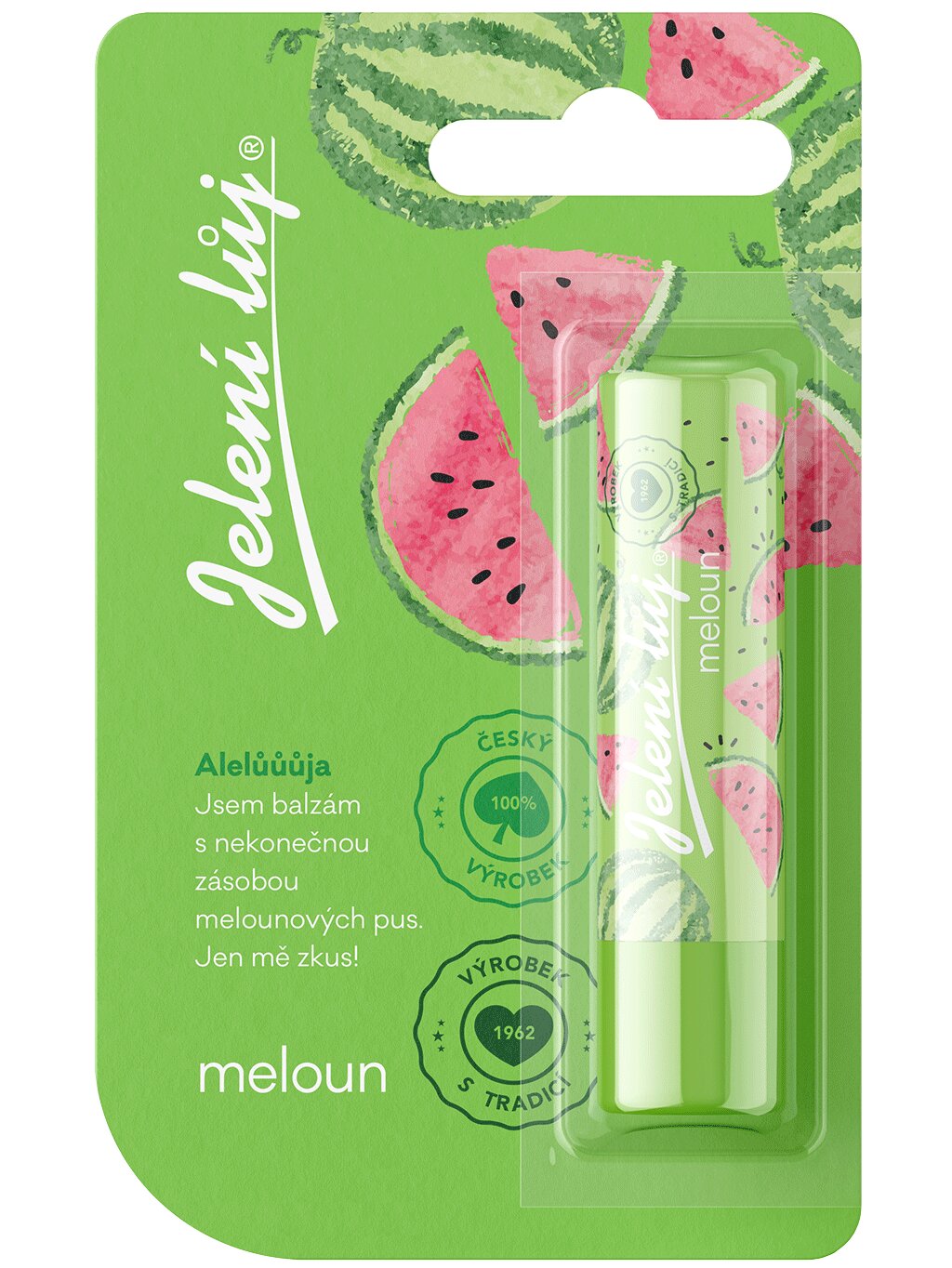 Oslaď rtíky melounem | Chutná jako cukrová vata a sladký polibek uprostřed rozpálené pláže. Klepou se ti kolena? Aby ne, takovou slaďárnu člověk jen tak nezažije. Oslň leskem celou zem | Netvař se jak pecka a rozdávej úsměvy na potkání. Melounový Jelení lůj pokrývá rty jemně lesklým filmem, který ti dodá neodolatelné sebevědomí. Slunce, pusy, hurá ven | Nebojíš se dělat vymelouniny! Jistota klidného úsměvu roste také s pocitem bezpečí. Jelení lůj poskytuje takovou ochranu rtů, že si budeš připadat bezpečně i při největších loupežničinách nebo třeba nepřízních počasí. Tvůj úsměv zůstane díky ochranné vrstvě stoprocentní pod kanonádou slunečních paprsků i kapek deště velkých jak trakaře.