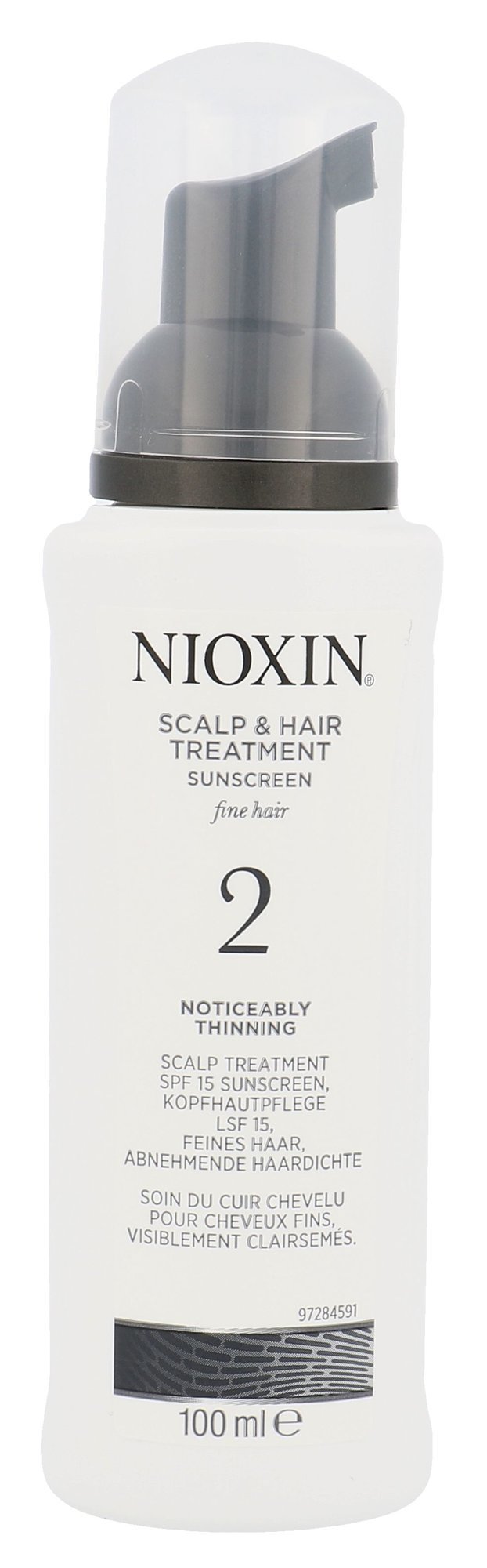 Vlasová péče **Nioxin System 2 Scalp Treatment** pro jemné a vypadávající vlasy. Nioxin System 2 Scalp Treatment je přípravek, který bojuje proti vypadávání vlasů. Posiluje vlasy a vlasovou strukturu. Odstraňuje přebytečný maz. Zanechává vlasy svěží a zdravé. Bohaté složení obsahuje aktivní látky, které redukují vypadávání vlasů, zároveň vlasům dodávají zdravý vzhled. **Účinky**: · zabraňuje vypadávání vlasů · posiluje vlasy · dodává vlasům zdravý vzhled **Použití**: Důkladně protřepejte. Aplikujte na umyté vlasy a vmasírujte. Neoplachujte.