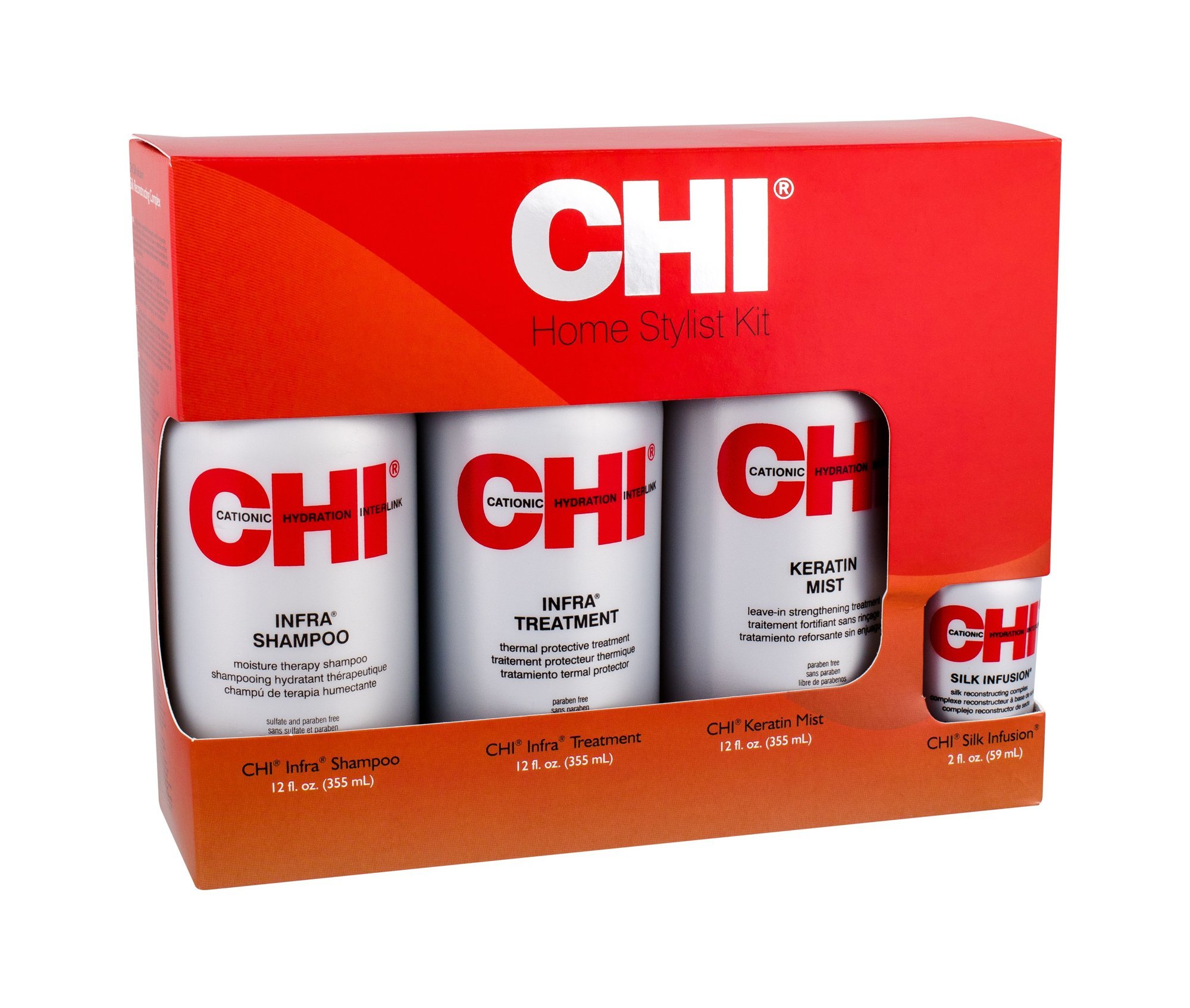 Farouk Systems CHI Infra šampon 355 ml + balzám na vlasy 355 ml + regenerační péče Keratin Mist 355 ml + regenerační péče Silk Infusion 59 ml
