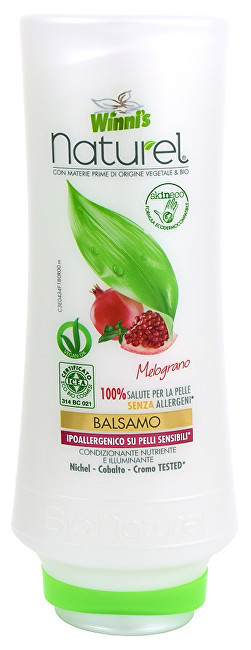 NATUREL Balsamo Melograno je bio balzám na vlasy obohacený organickými extrakty z granátového jablka a kaštanu. Extrakt z jedlého kaštanu usnadňuje rozčesávání vlasů a dodává dokonalý lesk. Fyziologické pH zaručuje přirozenou ochranu pokožky.