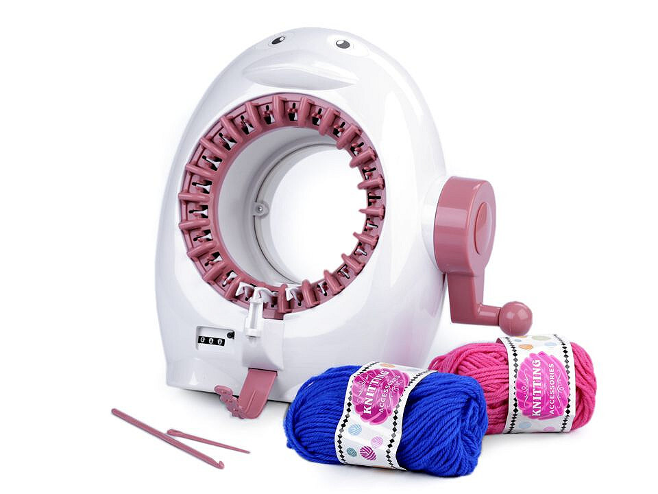 - Balení obsahuje: 1 pletací mlýnek, 1 plastovou jehlu na přízi, 1 plastový háček, 2 klubíčka příze
