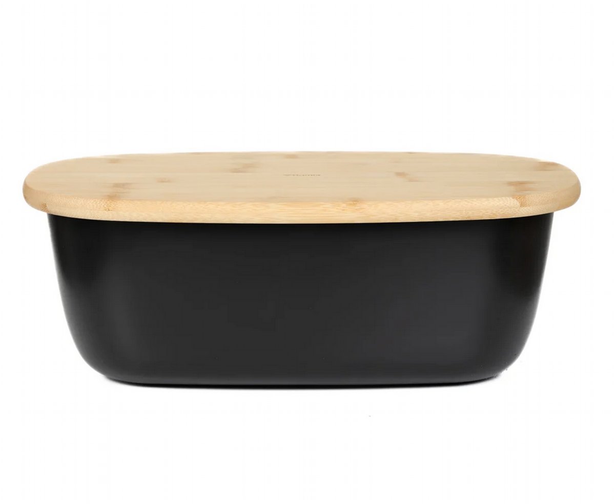 Chlebník | NORES | s bambusovým víkem černý | 37x22x14 cm | 882666 Homla