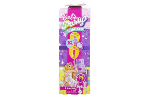 Panenky Barbie® Party Reveal přináší nový způsob rozbalování s tematickými doplňky a kouzelnou zábavou při míchání a tvoření! Každá panenka skrývá překvapení, včetně změny barvy. Děti postupně odhalí panenku, zvířátko, oblečky a doplňky, a díky magickému prášku mohou vytvořit barevnou modelínu. S přiloženým táckem je možné vytvářet tvary a razítka pro ještě větší zábavu! Každá panenka se prodává samostatně v závislosti na dostupnosti. Panenky nemohou stát samostatně. Barvy a provedení se mohou lišit. Věk 3+