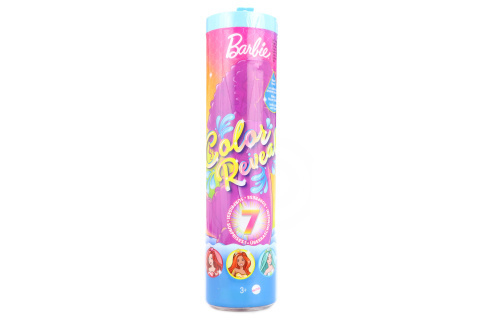 Se 7 překvapeními v 1 balení přinášejí panenky Barbie Color Reveal všechny druhy potěšení - děti budou milovat odhalování třpytivé série!? Naplňte tubu teplou vodou, vložte panenku dovnitř a kroužte s ní. Vytáhněte panenku a odhalte její vzhled - každá panenka mořské panny představuje jinou barvu duhy s dlouhými barevnými vlasy a vzorovaným ocasem! Otevřete 4 záhadné sáčky a odhalte jejich překvapení - měkkou ploutev k připevnění k ocasu mořské panny, pár manžet na zápěstí, korunku a hřeben z mušle. Oblečte panenku a vybavte ji doplňky, abyste mohli hrát příběhy - proměňte její vzhled na úžasný okamžik! Rozměr balení cca 32,5 x 8,5 x 8,5 cm. Věk 3+